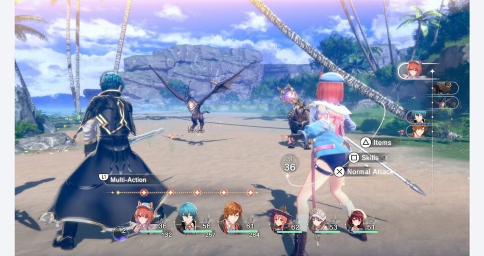As lutas podem ser bastante estratégicas e são em turno, onde você pode ter até 3 personagens na linha de frente. O jogo te dará escolhas entre um ataque básico, as famosas skills e etc, você também pode usar novos elementos como multi-actions, Item Mix e Unite Attacks, outro fato interessante são os ataques combinados que você pode usar com dois ou mais personagens, sem falar na rapidez entre trocar de um personagem para o outro ou escolher com quem jogar.